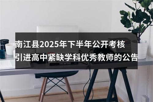 原标题:南江县2025年下半年公开考核引进高中紧缺学科优秀教师的公告