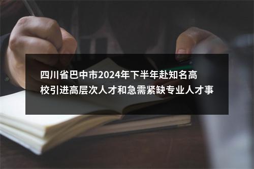 - 四川省巴中市2024年下半年赴知名高校引进高层次人才和急需紧缺专业人才公告(831人)