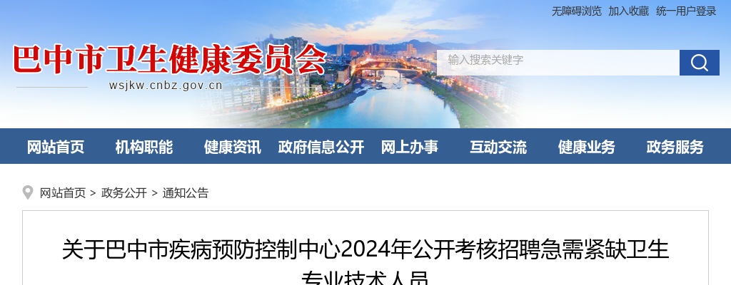 原标题:关于巴中市疾病预防控制中心2024年公开考核招聘急需紧缺卫生专业技术人员 体检事宜的公告