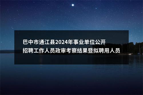 原标题:通江县人力资源和社会保障局 关于巴中市通江县2024年事业单位公开 招聘工作人员政审考察结果暨拟聘用人员公告